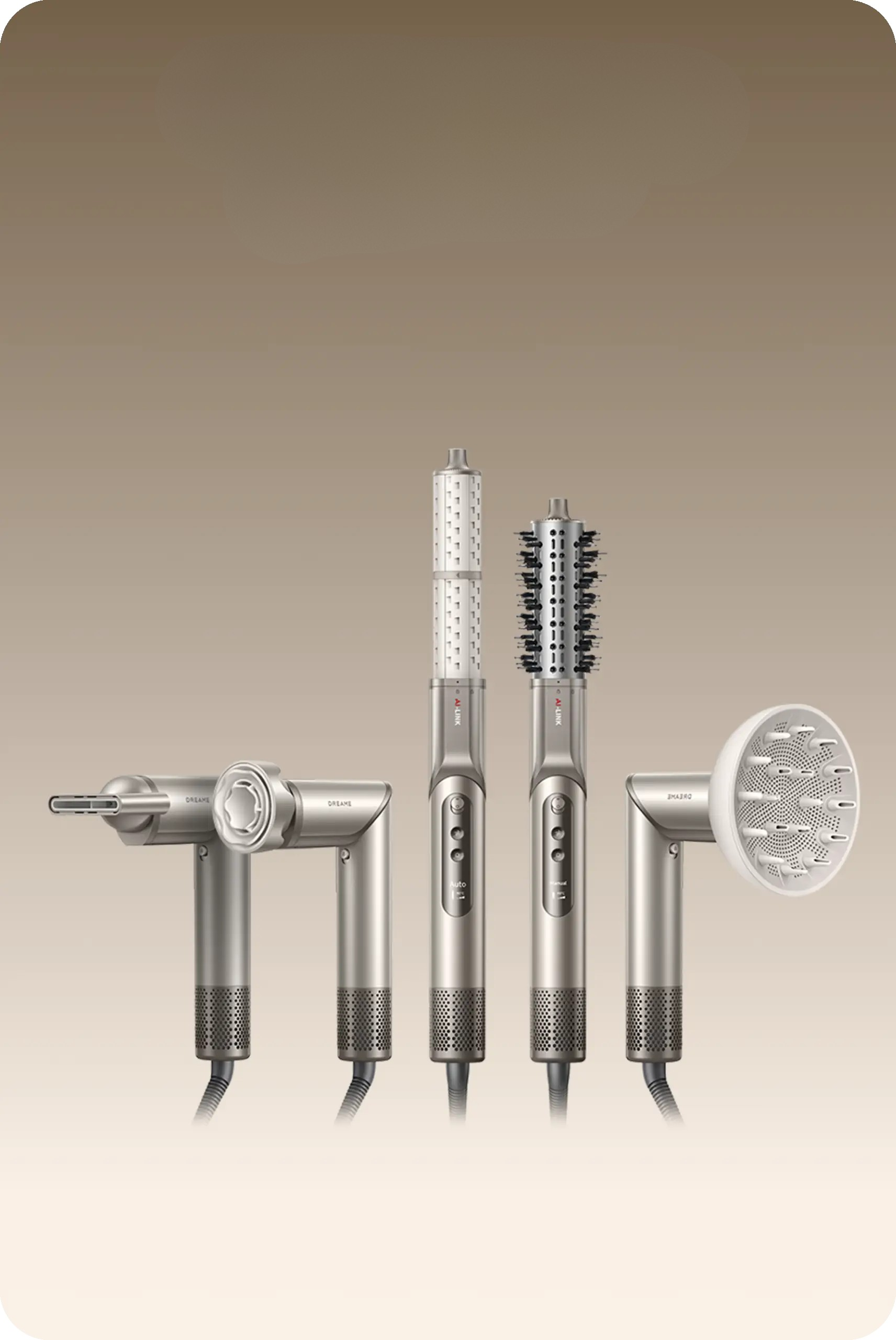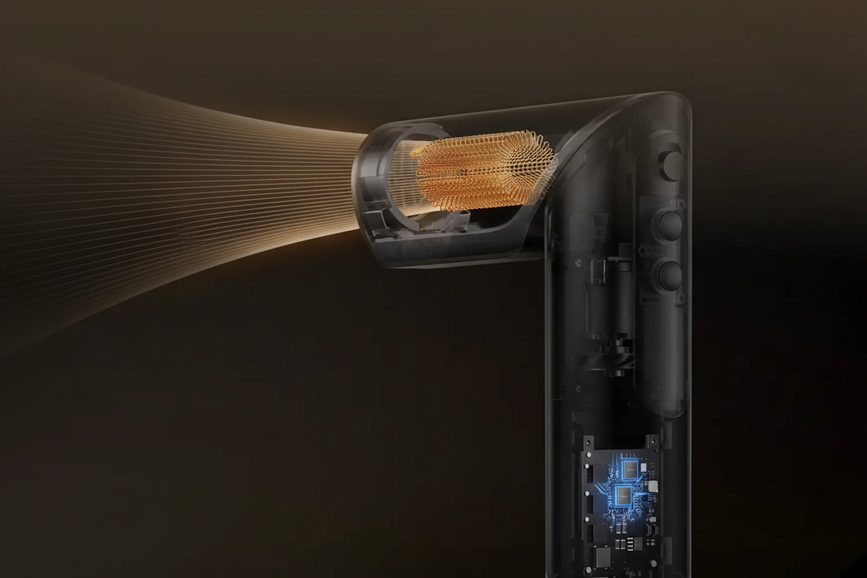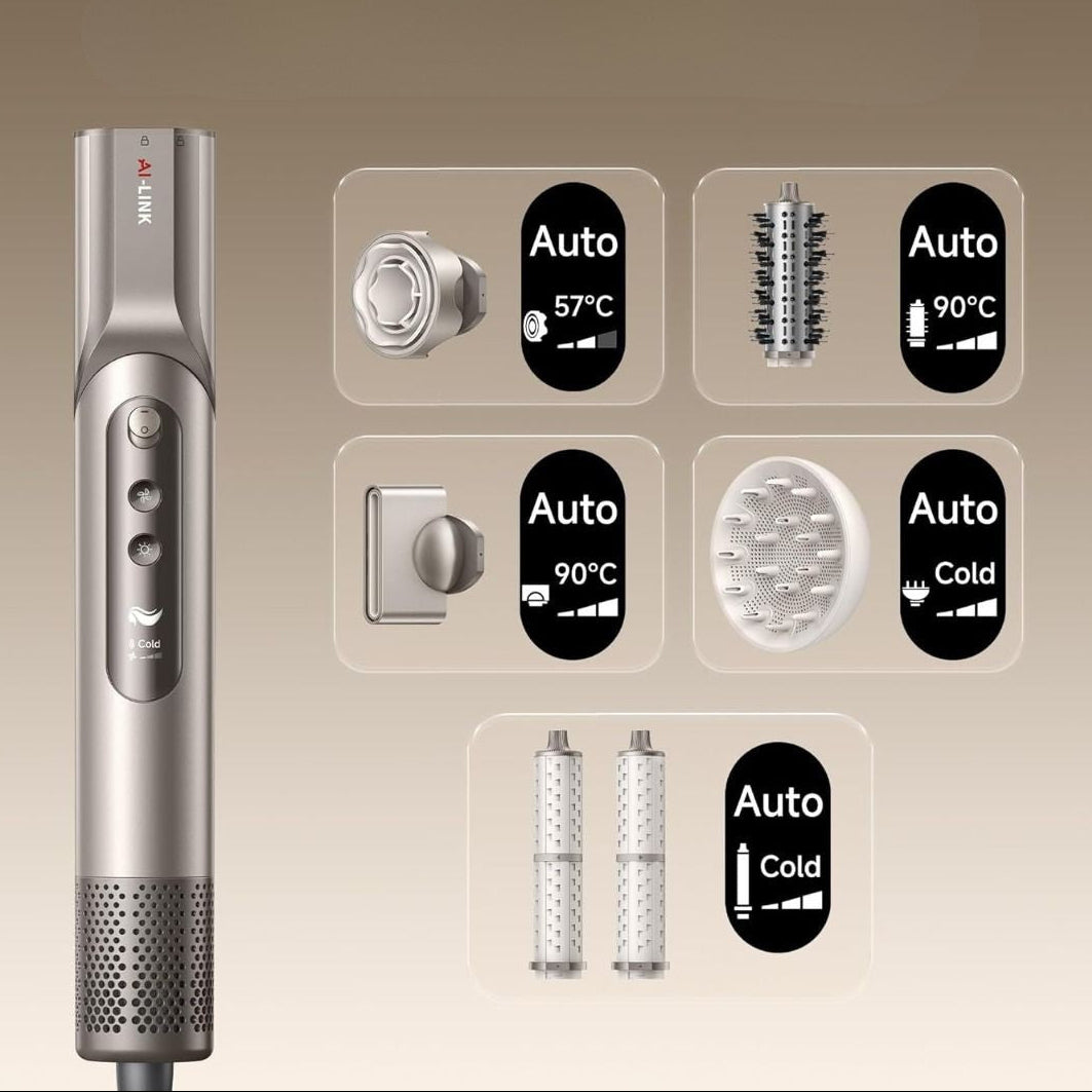 Dreame Dazzle je lagani (360 g) i snažan višenamjenski uređaj za brzo sušenje i oblikovanje kose s brzinom motora od 110 000 okretaja u minuti, protokom zraka od 65 m/s i 300 milijuna negativnih iona za sjajnu kosu bez grudica.