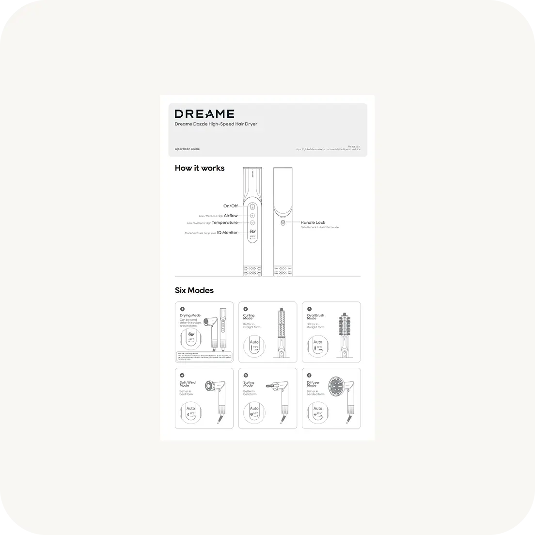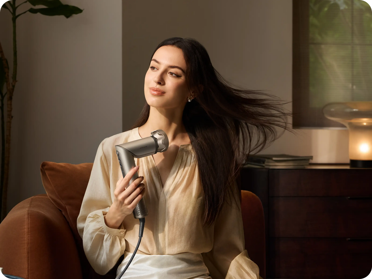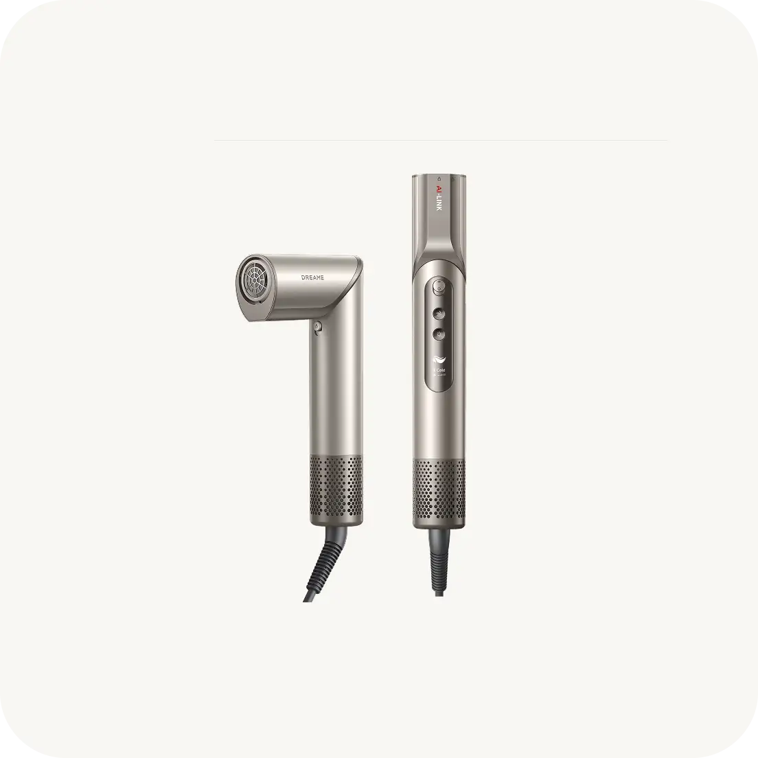 Dreame Dazzle je lagani (360 g) i snažan višenamjenski uređaj za brzo sušenje i oblikovanje kose s brzinom motora od 110 000 okretaja u minuti, protokom zraka od 65 m/s i 300 milijuna negativnih iona za sjajnu kosu bez grudica.
