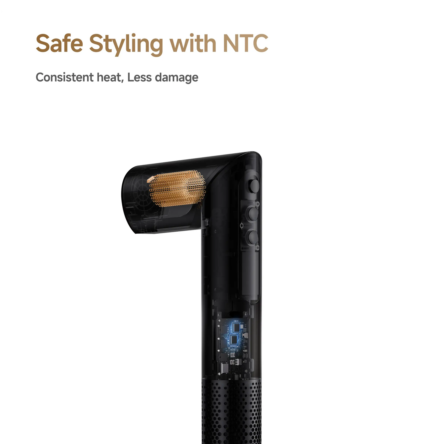 Inteligentno prepoznavanje ekstenzija automatski podešava temperaturu (3 razine: hladno/toplo/vruće) i brzinu (3 razine) - NTC senzor provjerava 1000x/sek zaštitu od pregrijavanja.