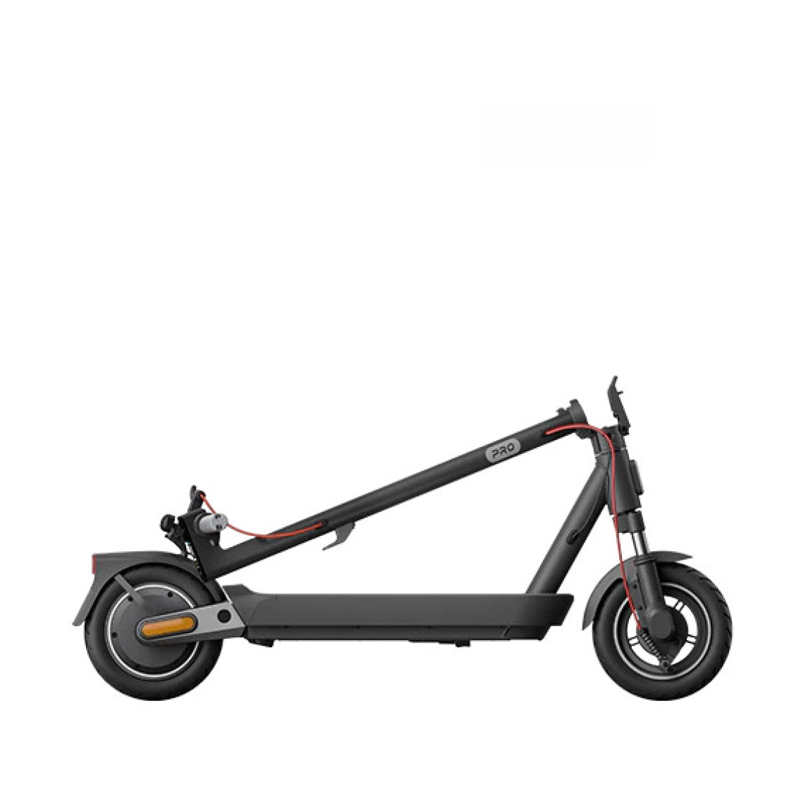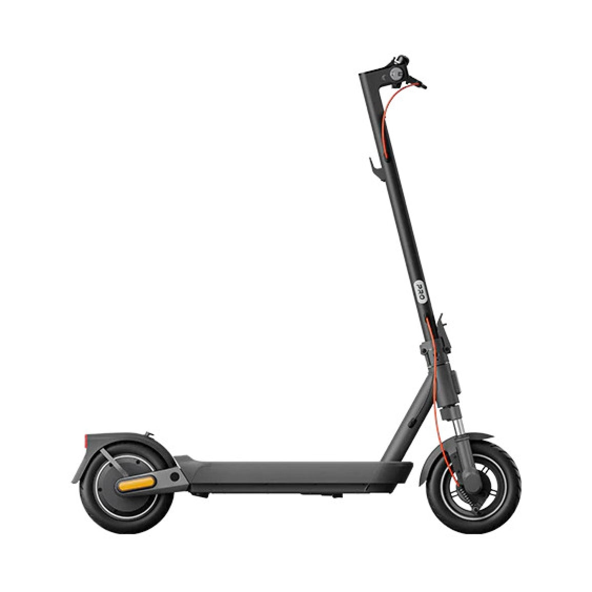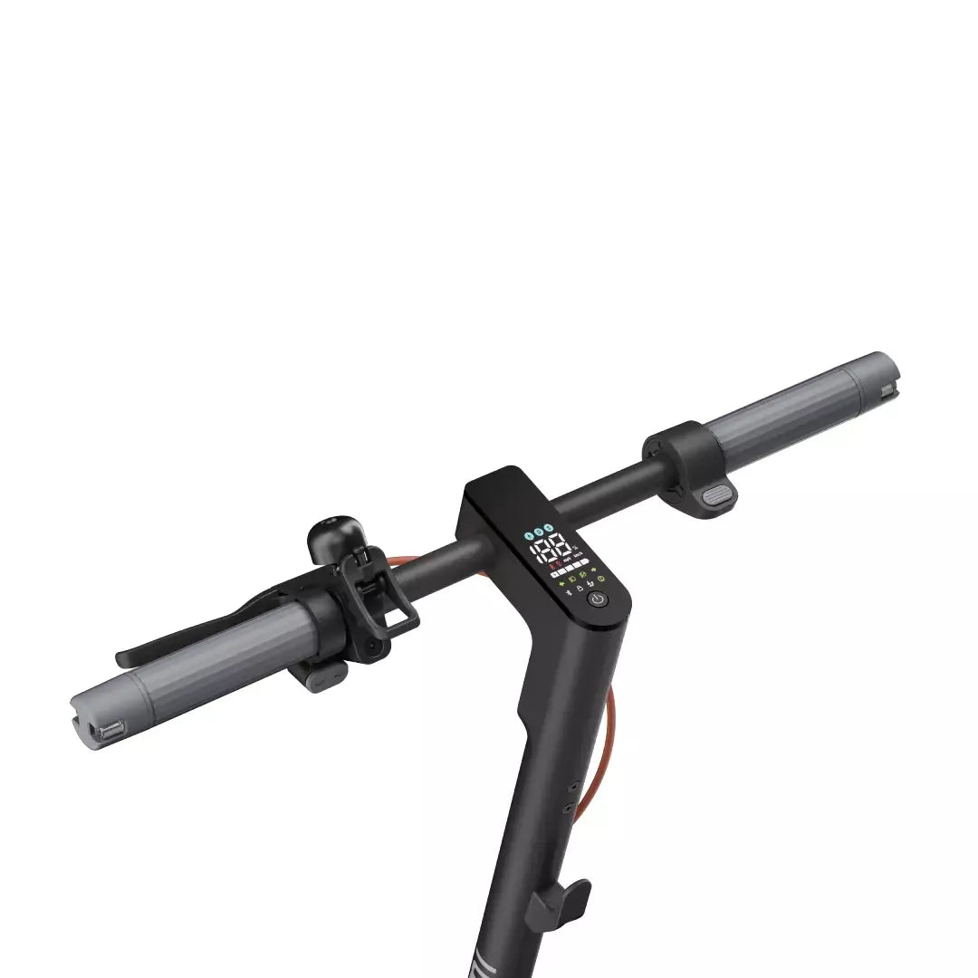 Za čvrstu i pouzdanu vožnju, Xiaomi Electric Scooter 5 Pro ima okvir od 1,5 mm zadebljanog ugljičnog čelika, koji može podnijeti teret do 120 kg. 10“ gume bez zračnica pružaju izuzetnu apsorpciju udaraca i izvrsnu stabilnost, čineći vožnju udobnom i sigurnom, čak i pri velikim brzinama i u zavoju. Središnja nadzorna ploča romobila omogućuje praćenje brzine u stvarnom vremenu, statusu baterije i drugih važnih informacija. Za dodatnu sigurnost, romobil je opremljen integriranim pokazivačima smjera na rubovima upravljača koji uključuju svjetlosni signal i zvučni alarm kako bi upozorili pješake i druge sudionike u prometu na vaš smjer kretanja.