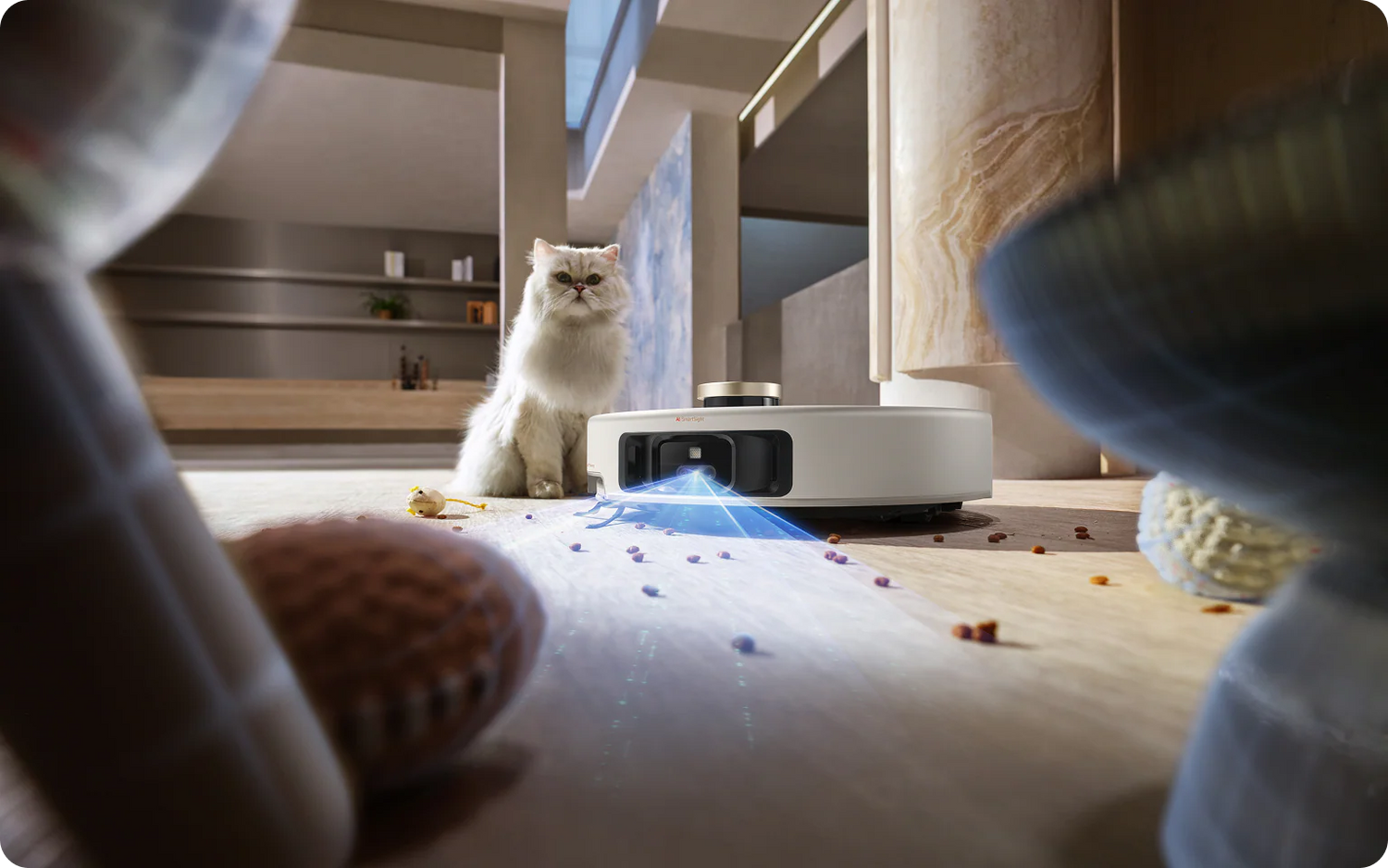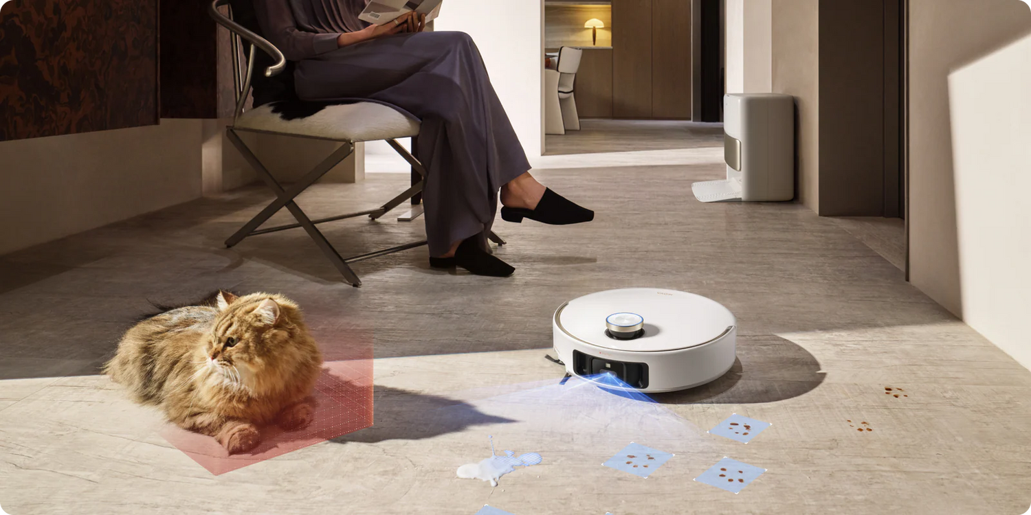 - Posebno za prepoznavanje mačjeg pijeska i hrane za kućne ljubimce. Kombinira prepoznavanje zvučnih uzoraka s identifikacijom AI kamere. Karta aplikacije ističe velike ostatke, automatski prilagođavajući snagu usisavanja i brzinu četke kada su u blizini. Za mala područja koristi cik-cak putanju čišćenja za temeljitije čišćenje.