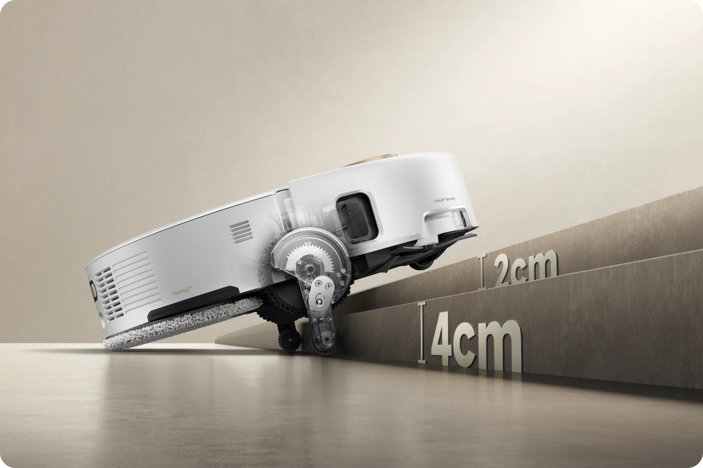 StepMaster™ sustav ima robotske uvlačive noge koje mogu podići šasiju, omogućujući mu lako prelaženje preko stepenica, pragova, tračnica vrata, nogu namještaja u obliku slova U i malih prepreka visine do 6 cm*. S lakoćom se kreće kroz složena kućna okruženja za temeljito čišćenje i bez napora povratak.
