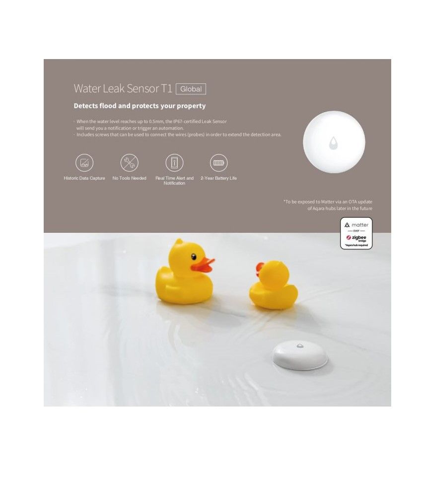 IP67 ocjena otpornosti na prašinu i vodu: Aqara T1 senzor curenja vode zadovoljava IP67 ocjenu otpornosti na prašinu i vodu. Zajamčeno radi u vlažnim i prašnjavim okruženjima.