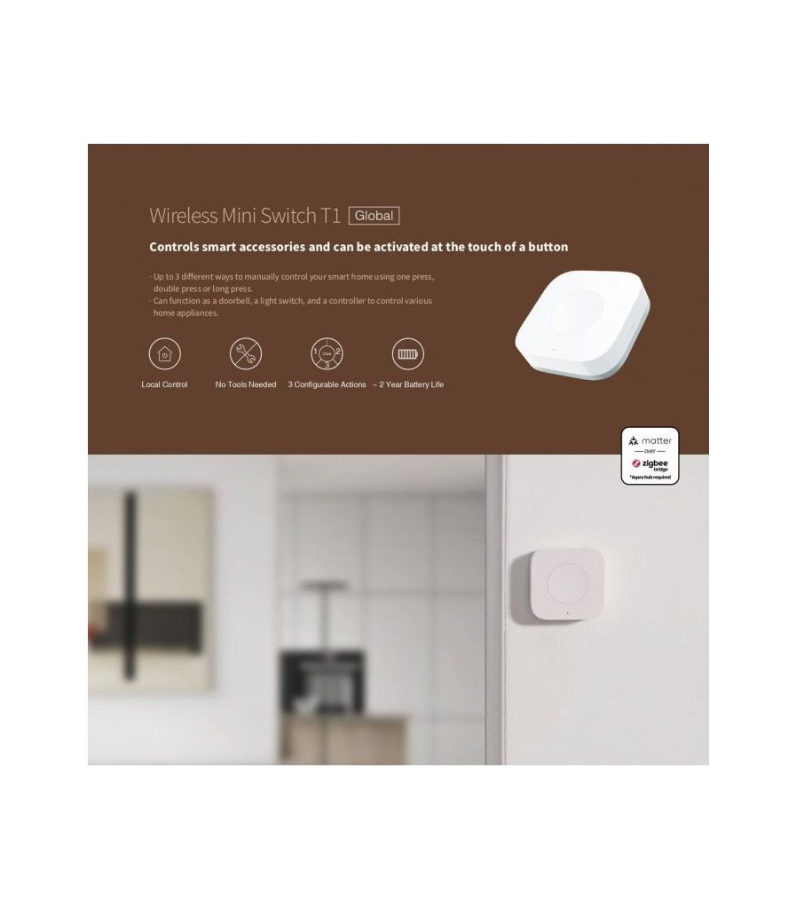 Aqara Wireless Mini Switch T1 je daljinski prekidač kompaktnog dizajna i niske potrošnje energije. Možete ga postaviti ili zalijepiti gotovo bilo gdje. Jedan pritisak, dvostruki pritisak ili dugi pritisak za upravljanje raznim pametnim dodacima kao što su pametno svjetlo i pametna utičnica.