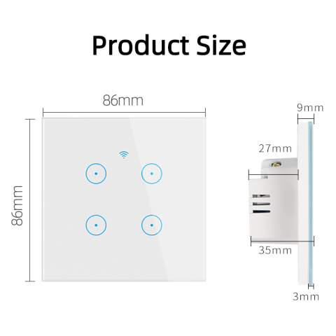 - Materijal: ABS plastika kučišta, 3mm kaljeno staklo osjetljivo na dodir, protupožarno i vodootporno kučište