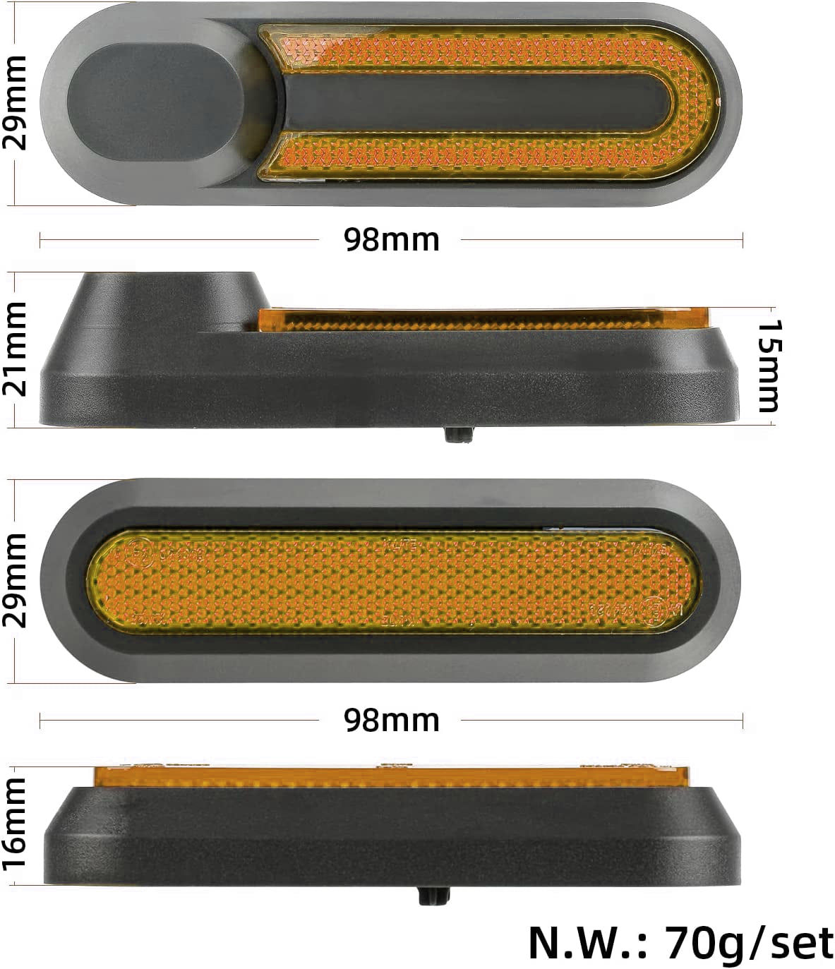 Ove školjke služe kao zaštitni i estetski element koji prekriva montažne vijke na okviru romobila, a ujedno zahvaljujući ugrađenoj reflektirajućoj površini povećava vidljivost i sigurnost tijekom noćne vožnje.