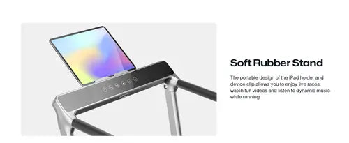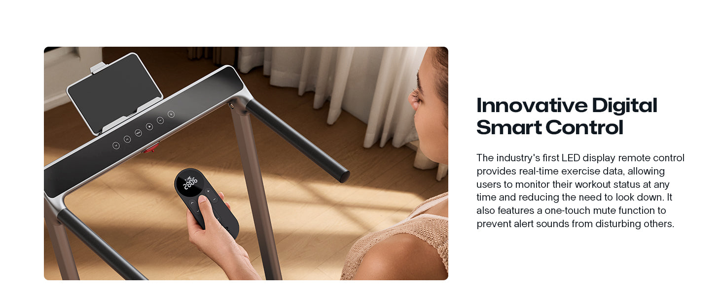 Za udobnost i stabilnost, rukohvat je izrađen od mekanog, neklizajućeg i na znoj otpornog materijala, dok dodatni stalak omogućuje sigurno postavljanje mobitela ili tableta kako biste mogli uživati u omiljenom sadržaju tijekom vježbanja. Uz praktični daljinski upravljač s LED zaslonom, korisnici mogu pratiti ključne parametre poput vremena, udaljenosti, broja koraka, brzine, nagiba i potrošenih kalorija, a iste informacije prikazane su i na kontrolnoj ploči uređaja.